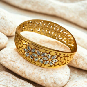 Designer Gold-Plated American Diamond Bangle with Floral Cutwork – Elegant Traditional Jewelry for Women