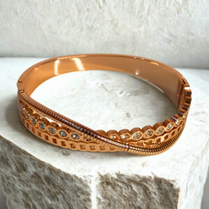 Rose Gold-Plated American Diamond Kada Bracelet for Women | Textured Twist Design Bangle with Dual Row Stones